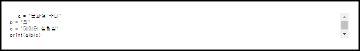 a = "문과생 주디" b = "의" c = "데이터 실험실" print(a+b+c)