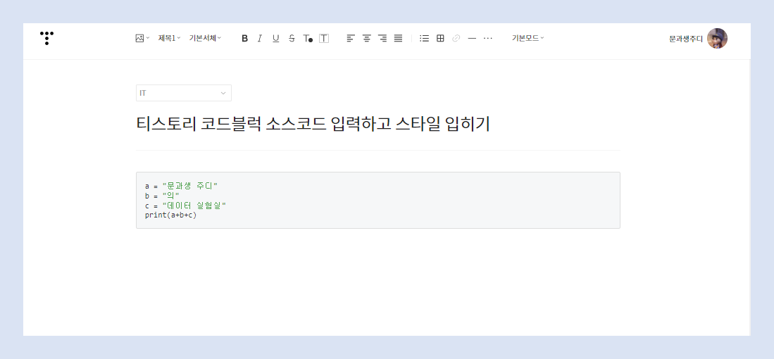 '보기좋은 떡이 먹기도 좋다' 는 말이 있듯이 티스토리에서 제공하는 코드블럭을 통해서 문법에 맞게 syntax 하이라이팅 기능이 제공된다고 하여 알아보았습니다.