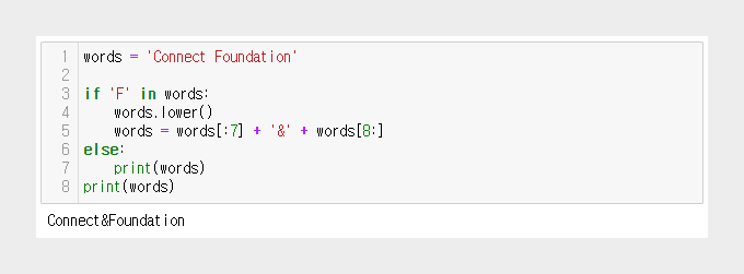 이를 해결하기 위해서는 슬라이싱 기법을 사용할 수 있습니다. 슬라이싱 기법을 통해 공백 기준으로 앞 뒤를 나눈 뒤 가운데에 '&' 문자를 추가하여 새로운 문자열을 만들어 줍니다.