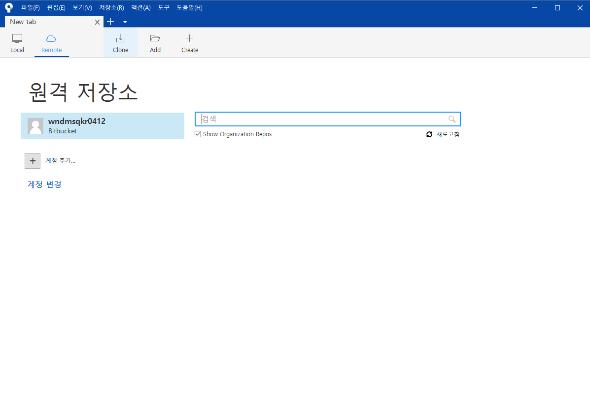 souretree가 설치되면 다음화면이 뜨는데요 이제 이곳에서 우리는 git의 버전관리를 연습해보겠습니다.