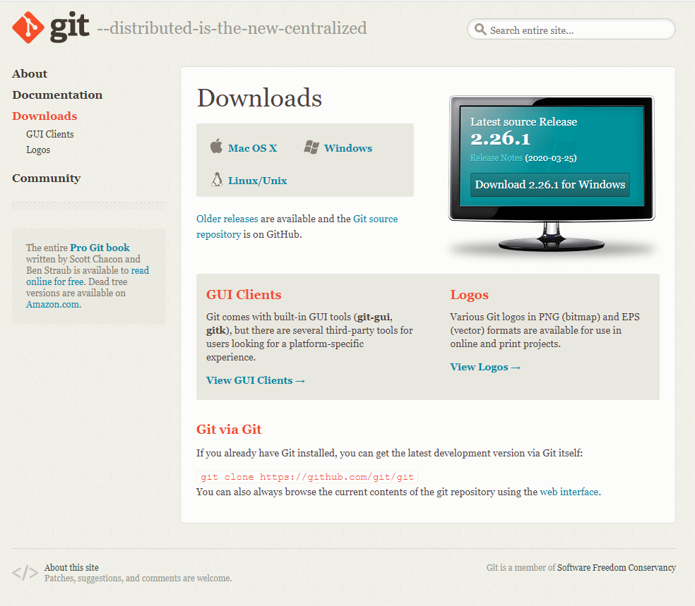 Downloads Mac OS X Windows Linux/Unix Older releases are available and the Git source repository is on GitHub. GUI Clients Git comes with built-in GUI tools (git-gui, gitk), but there are several third-party tools for users looking for a platform-specific