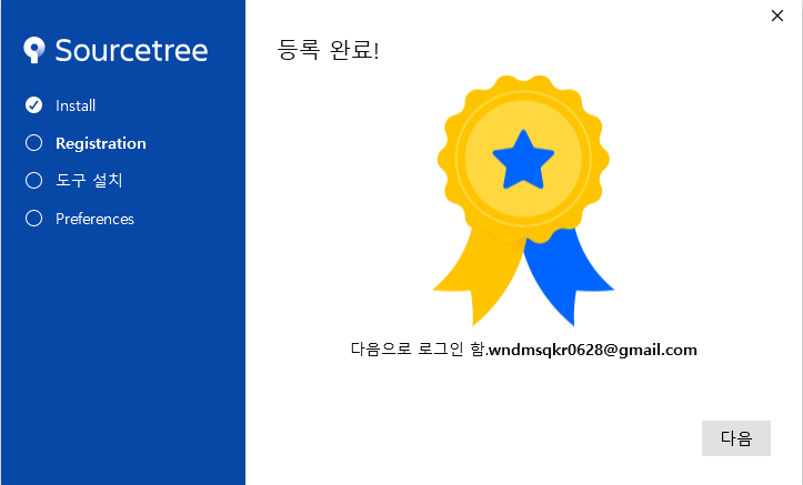 로그인이 끝나면 등록완료 표시가 뜹니다!