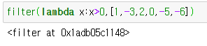 위의 두 예시는 양수를 구하는 함수를 lambda 와 def를 이용하여 정의한 뒤 filter를 이용해서 걸러낸 결과입니다.