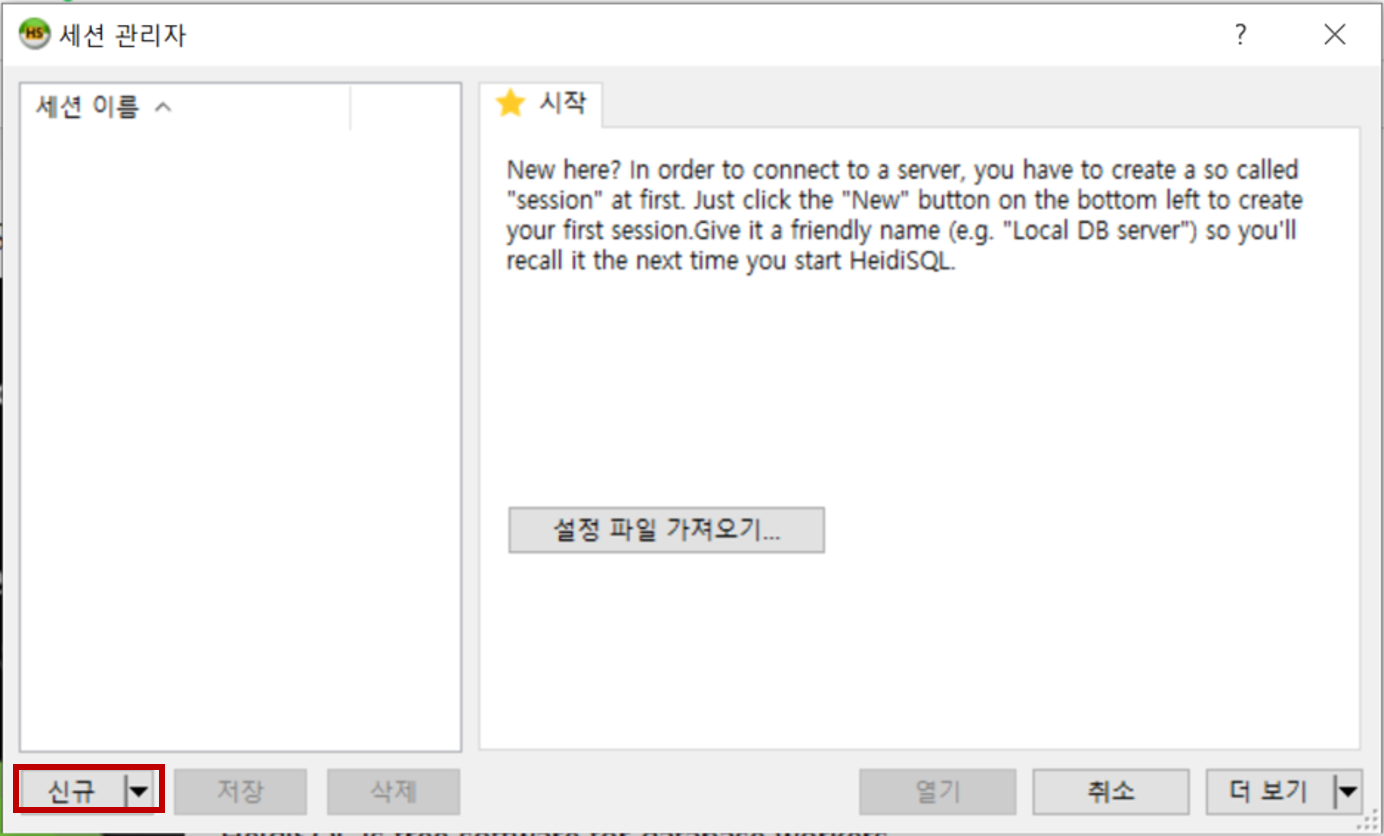 1. HeidiSQL을 실행하면 아래와 같은 화면을 볼 수 있습니다.
