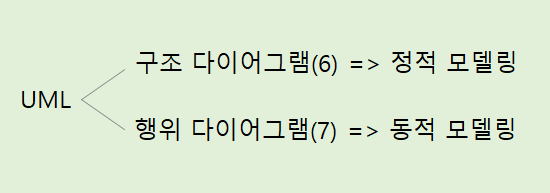 | 활동 다이어그램 | 시스템이 어떤 기능을 수행하는지 객체의 처리 로직이나 조건에 따른 처리의 흐름을 순서에 따라 표현 (기능모델링) |