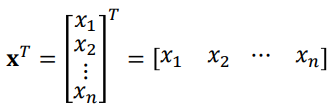 벡터는 row vector (nx1) = a horizontal vector과 column vector (1xn)= a vertical vector 가 있습니다. 기본적으로 vector 을 나타낼 때는 column vector을 의미합니다.